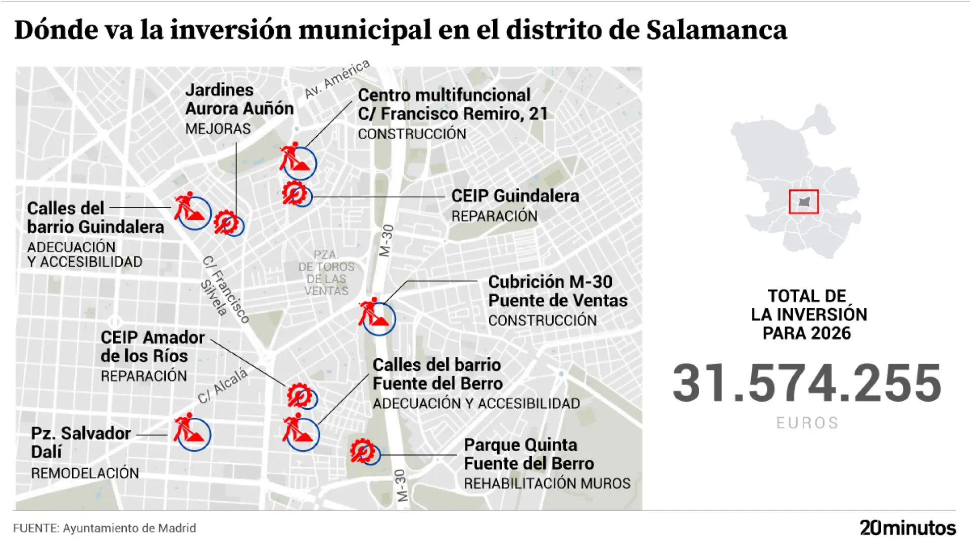 Reforma en calles y colegio de Guindalera, el centro en Francisco Remiro y parque Fuente del Berro: la inversión en Salamanca en 2026 28 feb 2026, 8:12 ... Redirecting to full article...