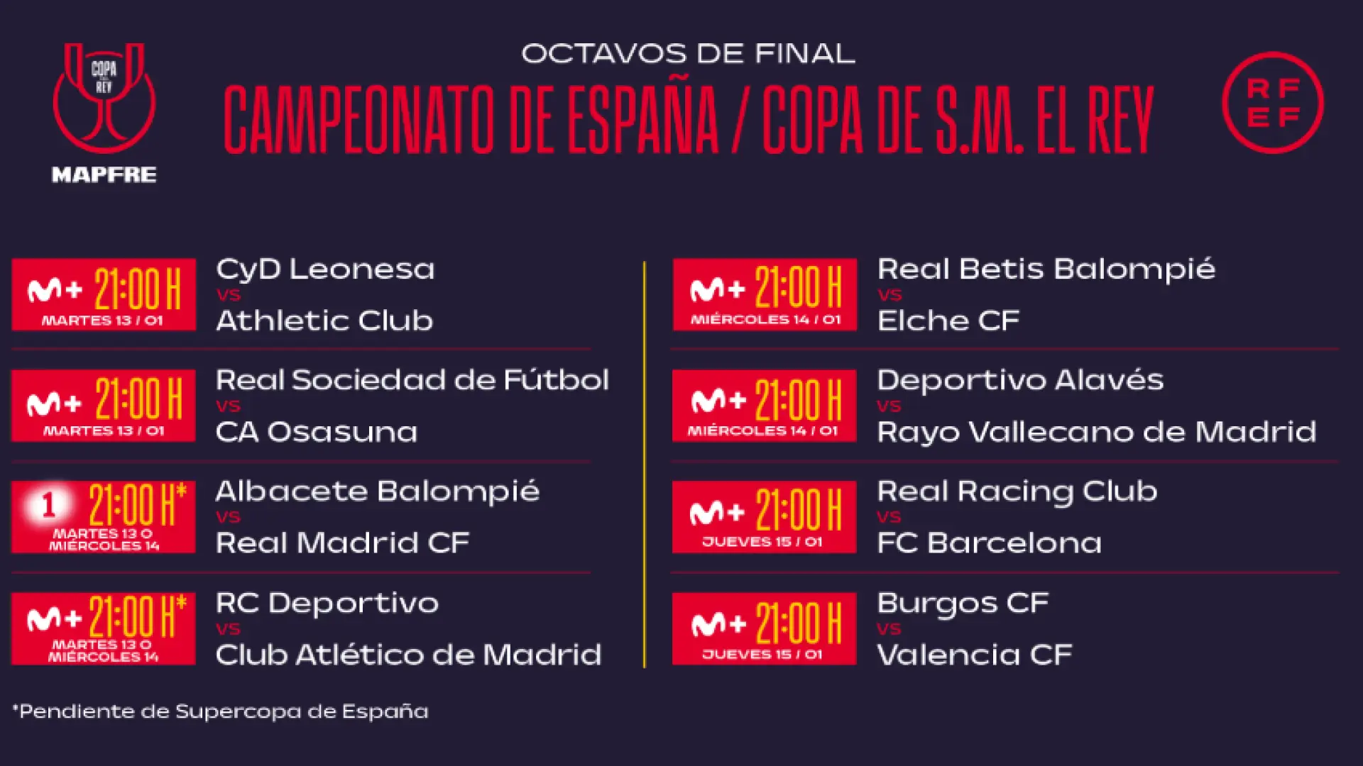 Horarios confirmados de los octavos de la Copa del Rey: pendientes del Atlético - Real Madrid de la Supercopa 8 ene 2026, 14:14 ... Redirecting to full article...