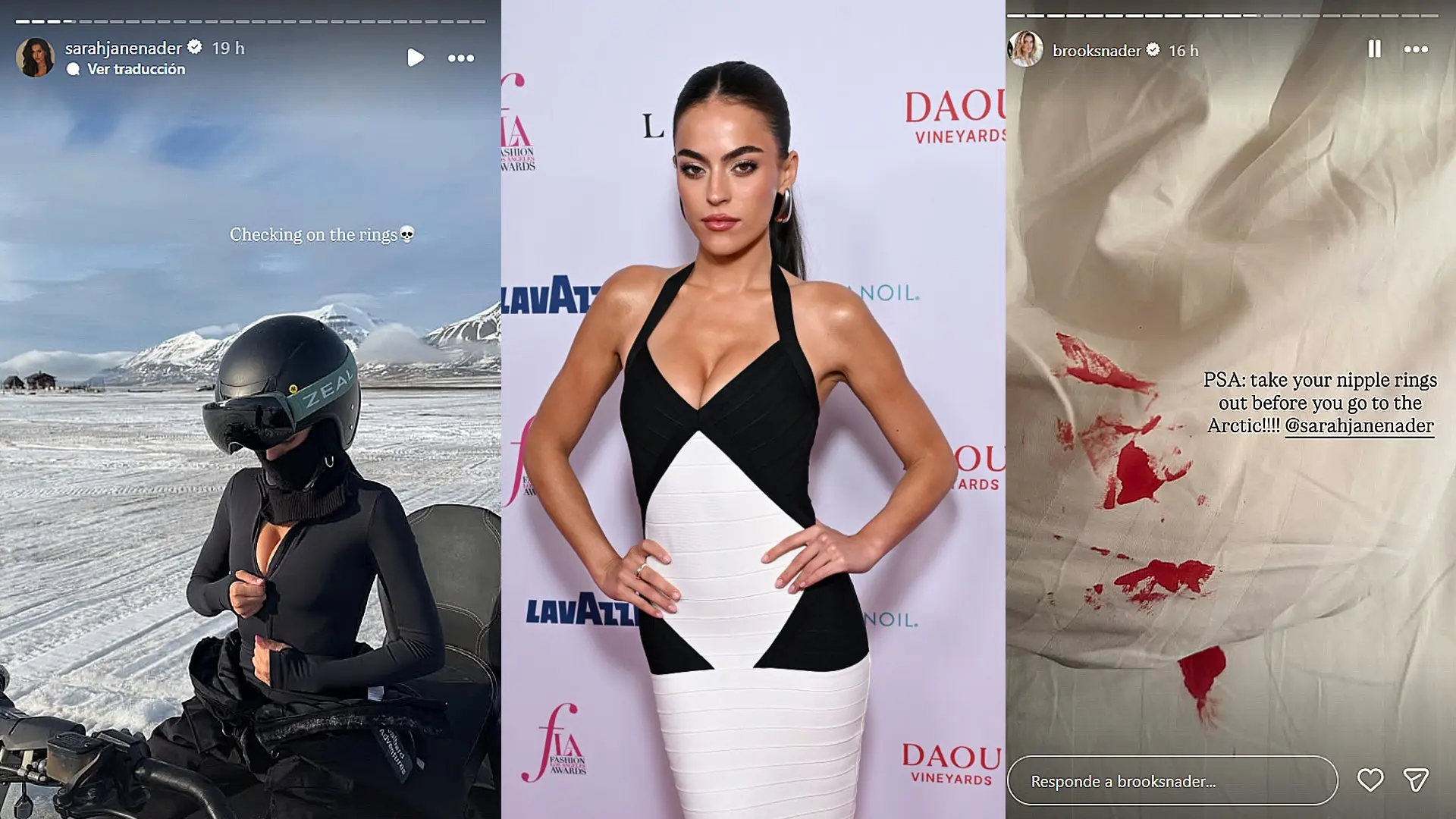 Una 'influencer' muestra los estragos de usar piercings en los pezones en medio del frío extremo del Ártico
