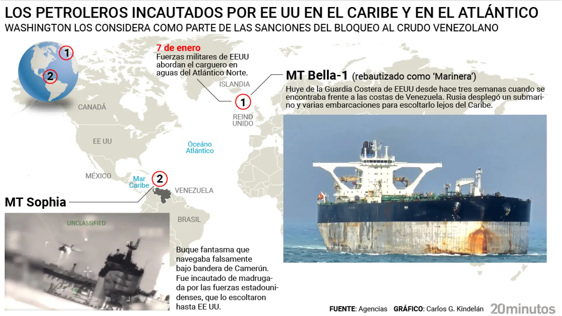 Qué se sabe de los petroleros interceptados por Trump: uno se 'bautizó' ruso en plena huida del Caribe... y el otro es "apátrida" 8 ene 2026, 7:19 ... Redirecting to full article...