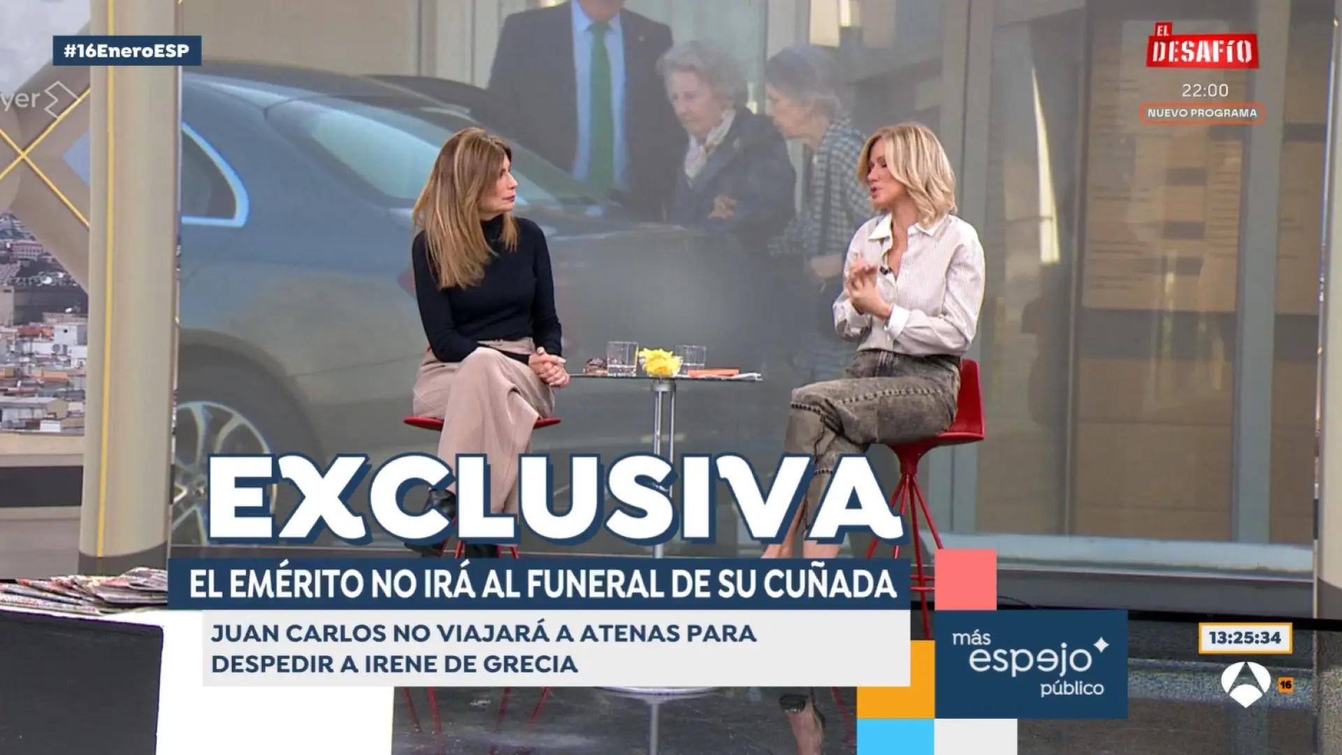 Susanna Griso revela que Juan Carlos I no acudirá al funeral de Irene de Grecia: "Sus médicos se lo han desaconsejado" 16 ene 2026, 15:35 ... Redirecting to full article...