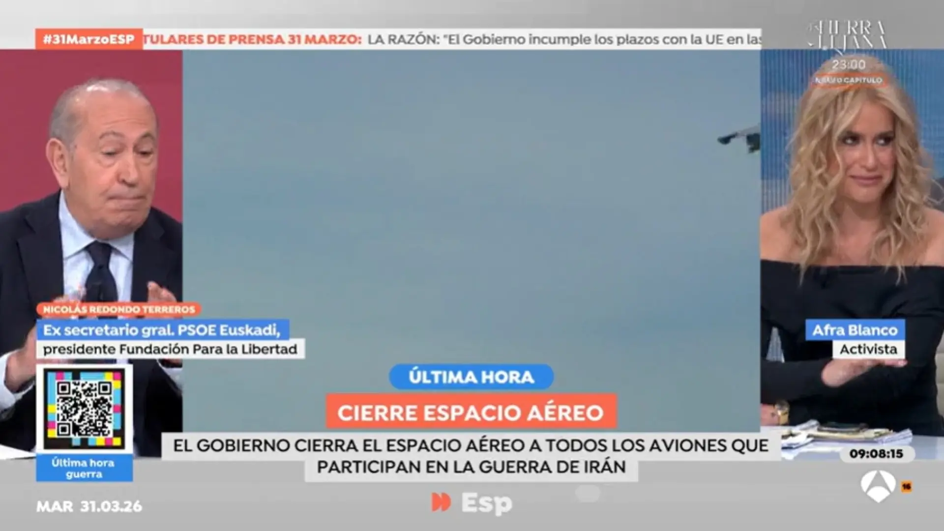 Tensión entre Nicolás Redondo y Afra Blanco: "A ver si esto va de lamerle la bota a un tío que se mete en guerras que no apoya ni la OTAN" 31 mar 2026, 11:55 ... Redirecting to full article...