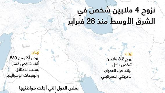نزوح 4 ملايين شخص في الشرق الأوسط منذ 28 فبراير