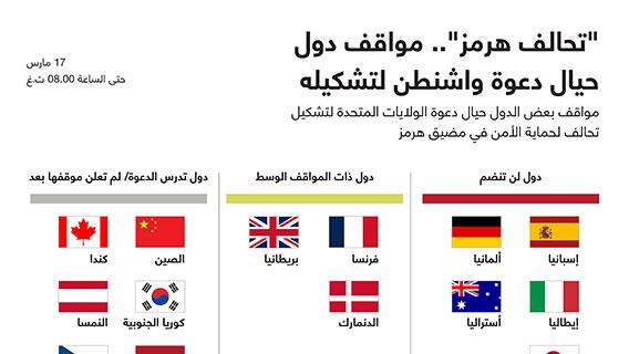 مواقف بعض الدول حيال دعوة الولايات المتحدة لتشكيل تحالف لحماية الأمن في مضيق هرمز....
