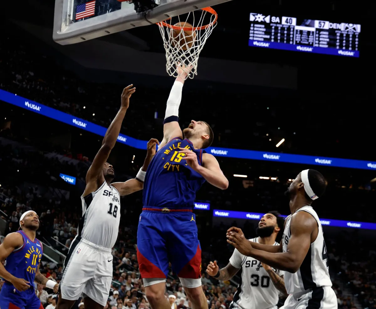 قاد الصربي نيكولا يوكيتش فريقه دنفر ناغتس إلى الفوز على سان أنتونيو سبيرز 128 - 118، مسجلاً 23 نقطة في الشوط الأول، ليحقق ناغتس انتصاره الـ12 توالياً، ويحسم المركز الـ3 في المنطقة الغربية، خلال اليوم الأخير من الموسم المنتظم لـ«دوري كرة السلة الأميركي للمحترفين (إن بي إيه)» الأحد. وفي يوم أراح فيه...