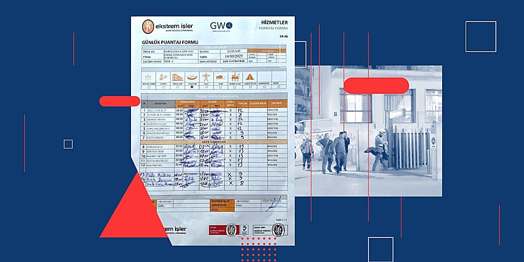 Los obreros subcontratados por la constructora turca que remodela el estadio del Barcelona denuncian jornadas abusivas, despidos improcedentes y sueldos indignos...