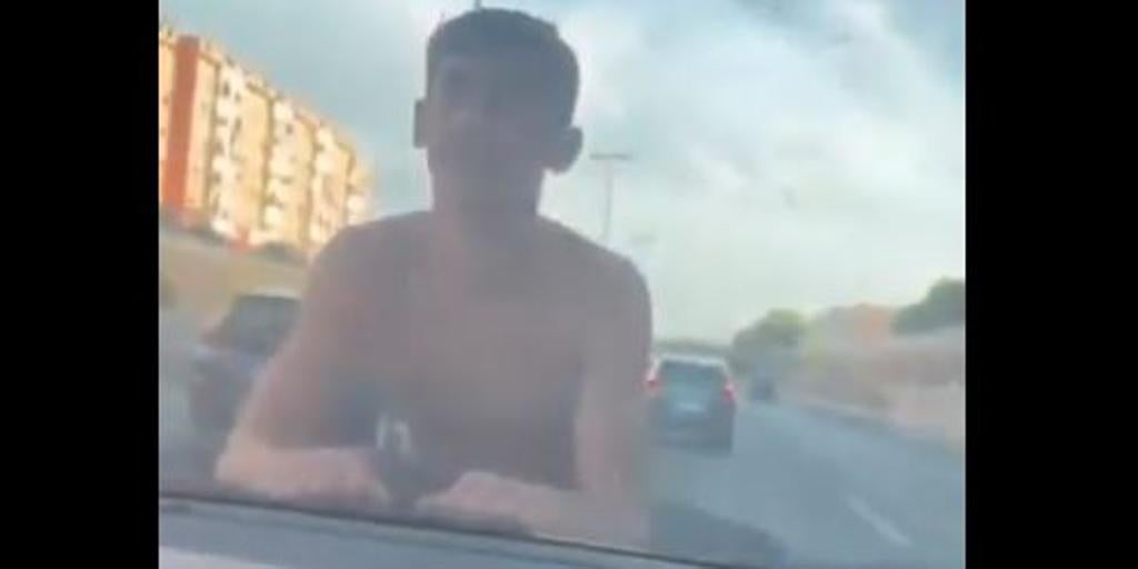 En las imágenes se observa cómo un individuo permanece encaramado a un vehículo que circula por una concurrida vía de la capital...
