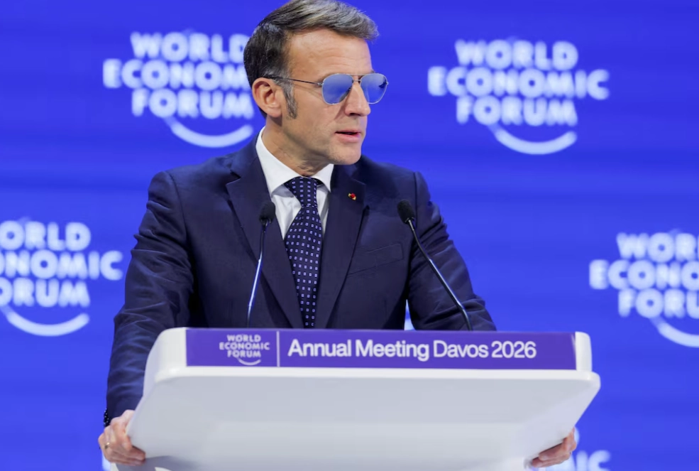حالة صحية طارئة.. سر ارتداء الرئيس الفرنسي نظارة شمسية في دافوس