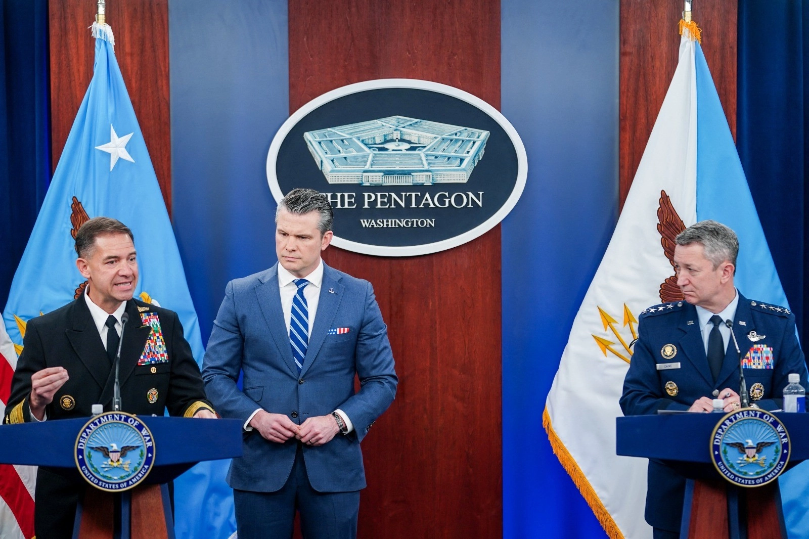 قال وزير الحرب الأمريكي بيت هيجسيث إن القوات الأمريكية في المنطقة على أهبة الاستعداد لاستئناف العمليات القتالية إذا اختارت إيران خيارًا خاطئًا ولم توافق على إبرام اتفاق. وأضاف "هيجسيث" خلال مؤتمر صحفي مشترك مع رئيس هيئة الأركان الأمريكية المشتركة الجنرال دان كين، وبحضور قائد القيادة المركزية الأمري...