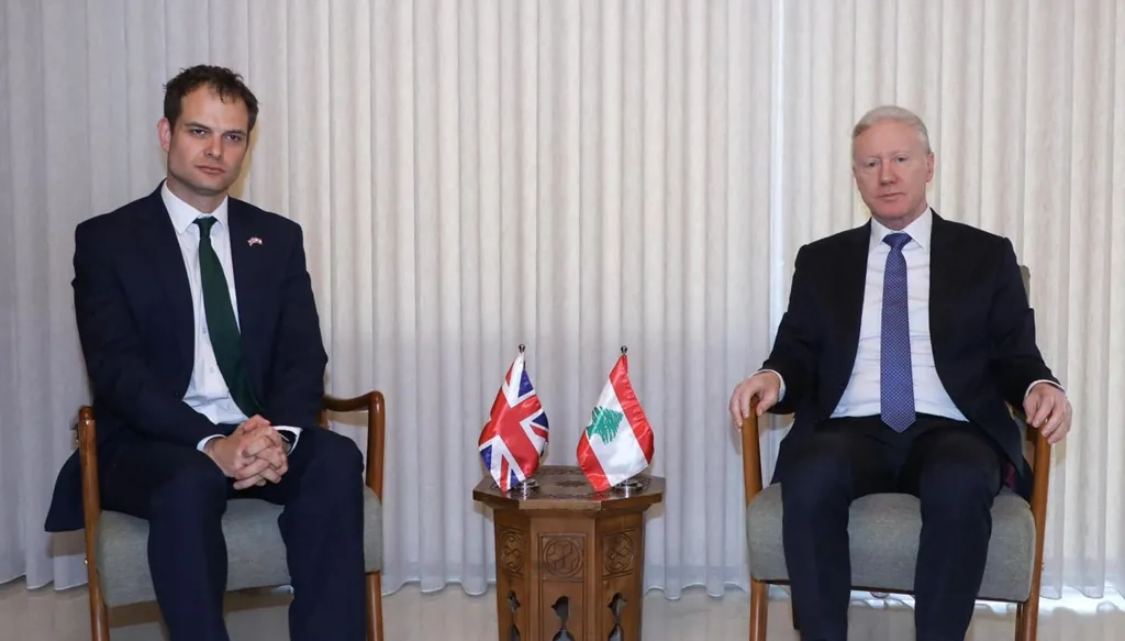 بحث وزير الخارجية اللبناني، يوسف رجي، خلال استقباله وزير الدولة البريطاني لشؤون الشرق الأوسط وشمال إفريقيا هاميش فالكونر، اليوم الخميس، المستجدات والتطورات على الساحة اللبنانية، إلى جانب مسار المفاوضات المرتقبة بين لبنان وإسرائيل. وقال "رجي" في بيان نقلته وكالة الأنباء اللبنانية، إن بلاده تُعلّق آم...