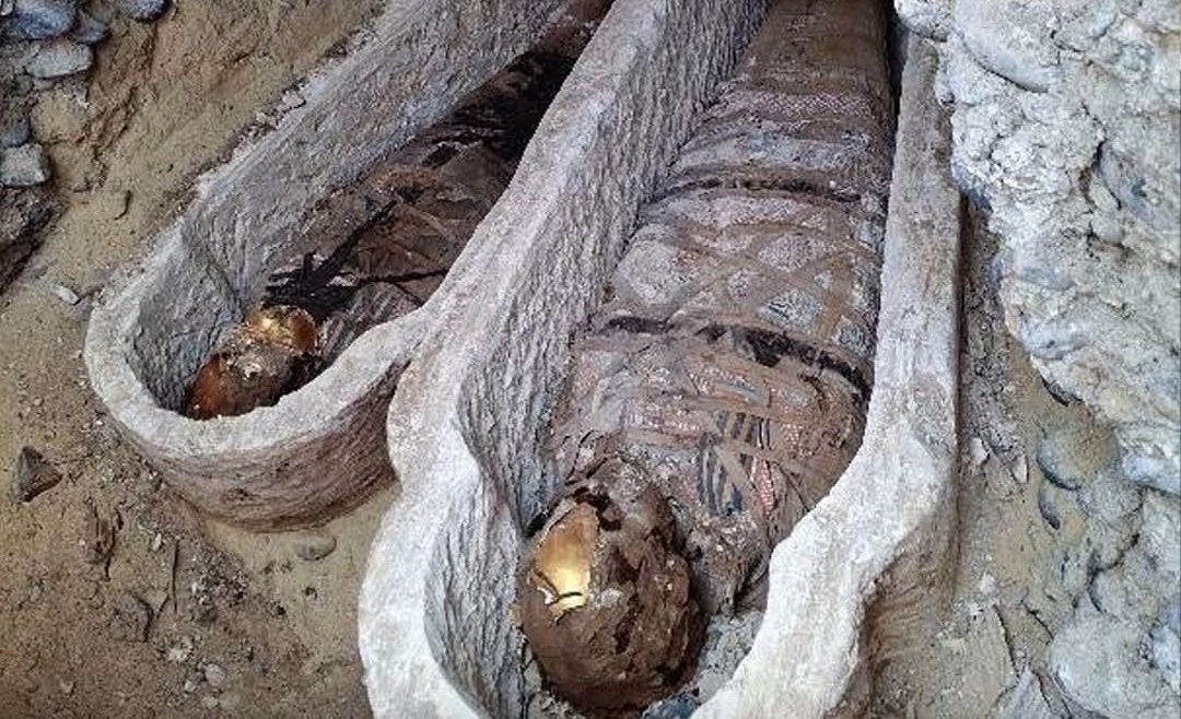 ألسنة ذهبية ونصوص لـ"هوميروس"..اكتشاف مقبرة من العصر الروماني بمصر