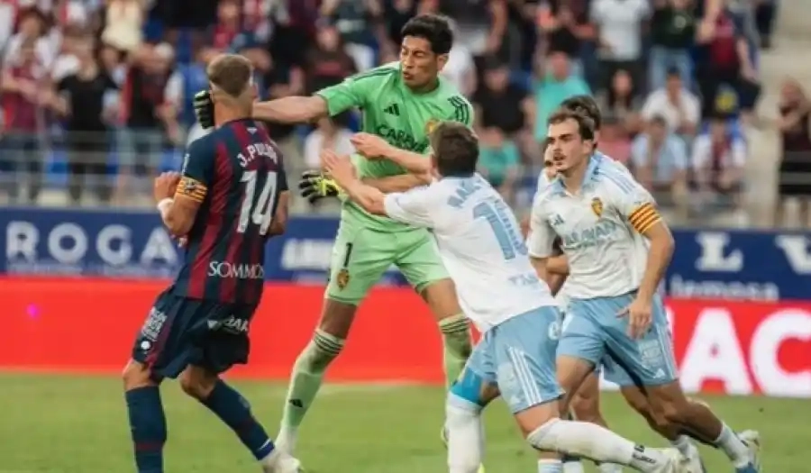 وجّه إستيبان أندرادا حارس مرمى ريال سرقسطة، لكمة إلى خورخي بوليدو قائد فريق ويسكا، بعد طرده في مباراة قمة محلية محتدمة في دوري الدرجة الثانية الإسباني لكرة القدم، والتي تحولت إلى شجار جماعي، أشهر خلاله الحكم البطاقة الحمراء لداني خيمينيز حارس مرمى ويسكا بعد أن لكم أندرادا. كما طُرد داني تاسندي لاعب...