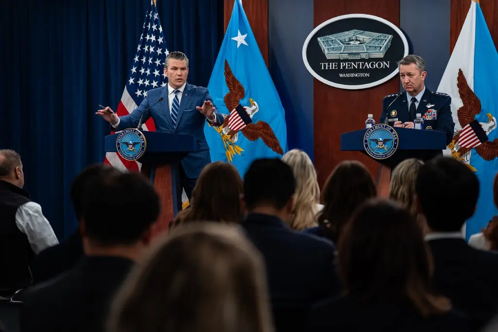 أثناء وصفهما لحالة العداء مع إيران يوم الأربعاء، اتخذ كلٌّ من وزير الحرب الأمريكي بيت هيجسيث ورئيس هيئة الأركان المشتركة الجنرال دان كين لهجات مختلفة. ووفق ما ذكرت صحيفة "واشنطن بوست"، وصف الأول الصراع في الغالب بصيغة الماضي، بينما بدا الجنرال غير راغب في استخدام مثل هذه المصطلحات المطلقة، وترك الب...
