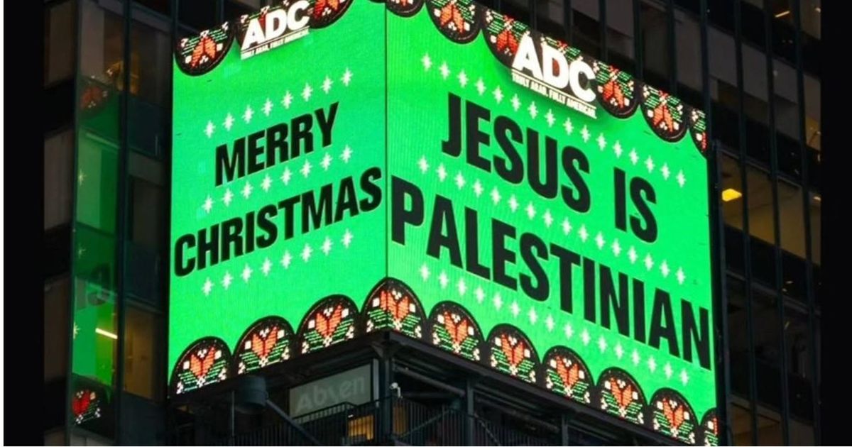 أثارت لوحة إعلانية ظهرت في ميدان تايمز سكوير في مانهاتن بولاية نيويورك كتب عليها "السيد المسيح فلسطيني"، جدلا كبيرا، بحسب ما أفادت به صحيفة نيويورك بوست. Inflammatory Times Square billboard proclaiming ‘Jesus is Palestinian’ slammed by holiday tourists: ‘A divisive message’ https://t.co/KKgrpTuvYz...
