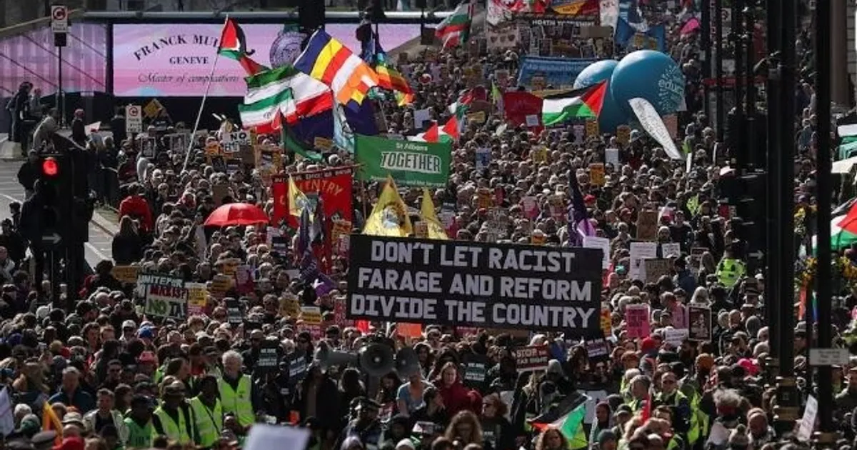 خرج عشرات الآلاف من المحتجين إلى شوارع العاصمة البريطانية لندن، السبت، للمشاركة في تظاهرات تحمل اسم "معاً ضد اليمين المتطرف"، منددين بتصدر حزب الإصلاح اليميني، والذي يقوده نايجل فاراج، استطلاعات الرأي في بريطانيا. ومن المتوقع أن المظاهرة التي ينظمها "تحالف معاً" ستكون واحدة من أكبر الاحتجاجات في ال...