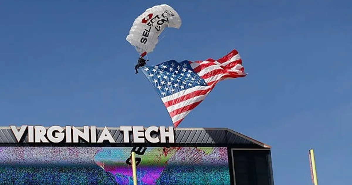 انحرف مظلي عن مساره وعلق بشاشة عرض ضخمة في ملعب تقام فيه مباراة كرة قدم أميركية في إطار دوري الجامعات، وظل معلقاً وسط قلق الجماهير لحين إنقاذه. وأظهرت مقاطع فيديو انتشرت على نطاق واسع من داخل ملعب تابع لجامعة فرجينيا للتكنولوجيا، وتحققت "رويترز" من صحتها، اثنين من المظليين لدى هبوطهما في ساحة الملع...