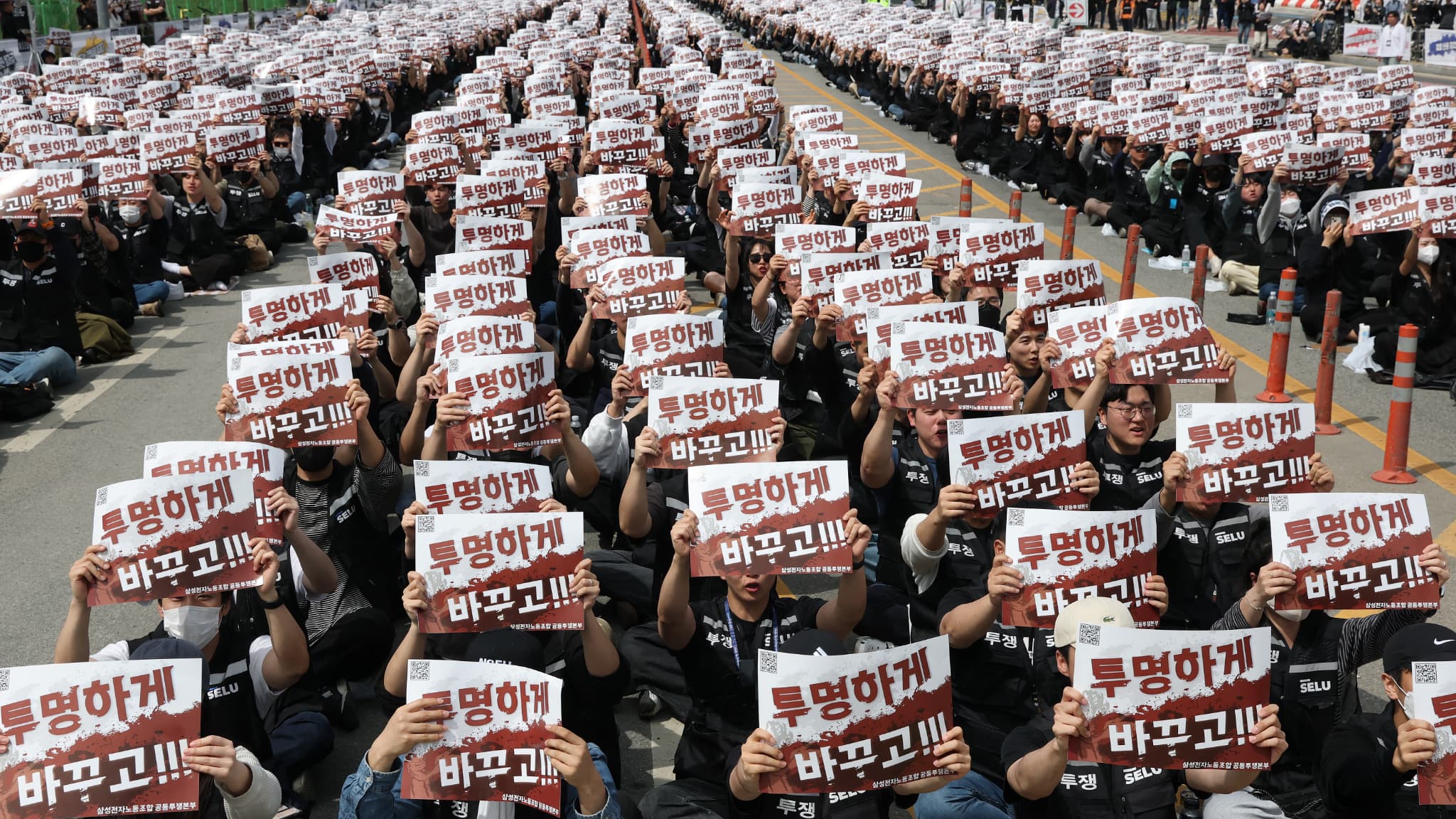 Les images impressionnantes de ces 40.000 salariés de Samsung qui manifestent pour obtenir leur part des profit colossaux de l'IA (quand le fondateur interdisait les syndicats)