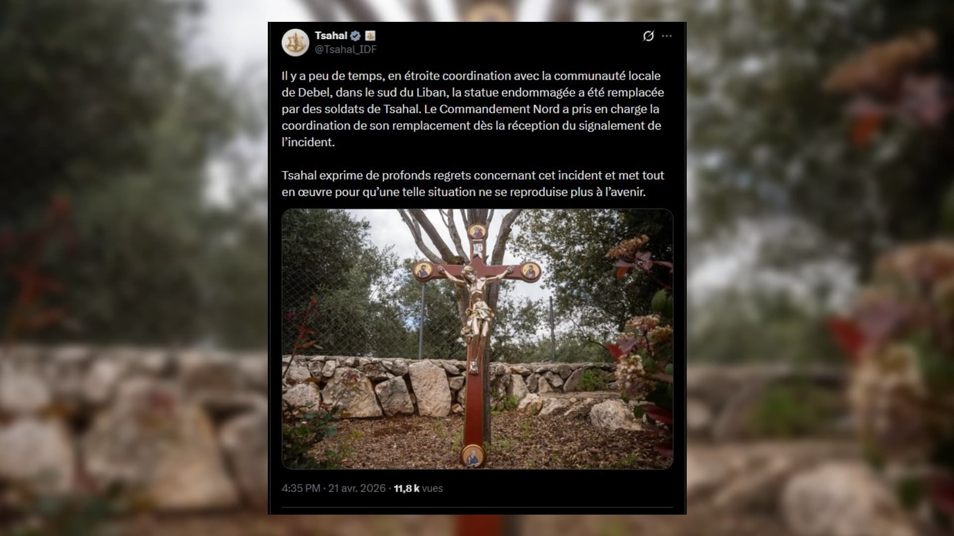 Guerre au Moyen-Orient: l'armée israélienne annonce avoir remplacé la statue de Jésus-Christ vandalisée par un de ses soldats au sud du Liban 23 avr. 2026, 11:07 ... Redirecting to full article...