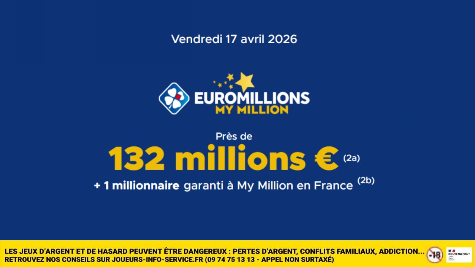 132 millions d'euros sont à gagner à l'EuroMillions ce vendredi, c'est peut être votre jour de chance 17 avr. 2026, 04:14 ... Redirecting to full article...