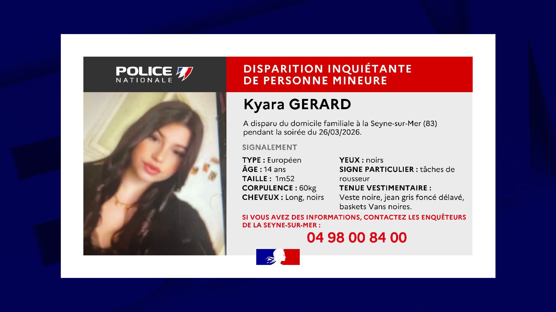 Disparition inquiétante d'une adolescente de 14 ans à la Seyne-sur-Mer, un appel à témoins lancé 27 mars 2026, 18:54 ... Redirecting to full article...
