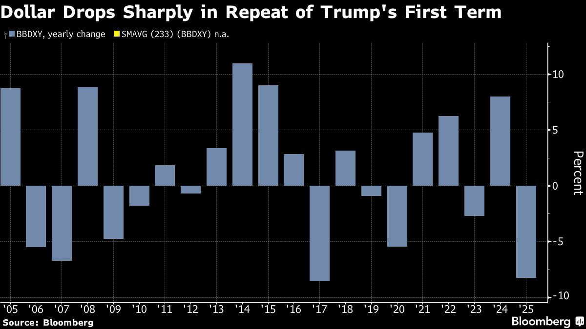 The dollar is heading for its weakest annual performance in eight years, and the options market is signaling that traders are preparing for more downside in the final sessions of 2025....