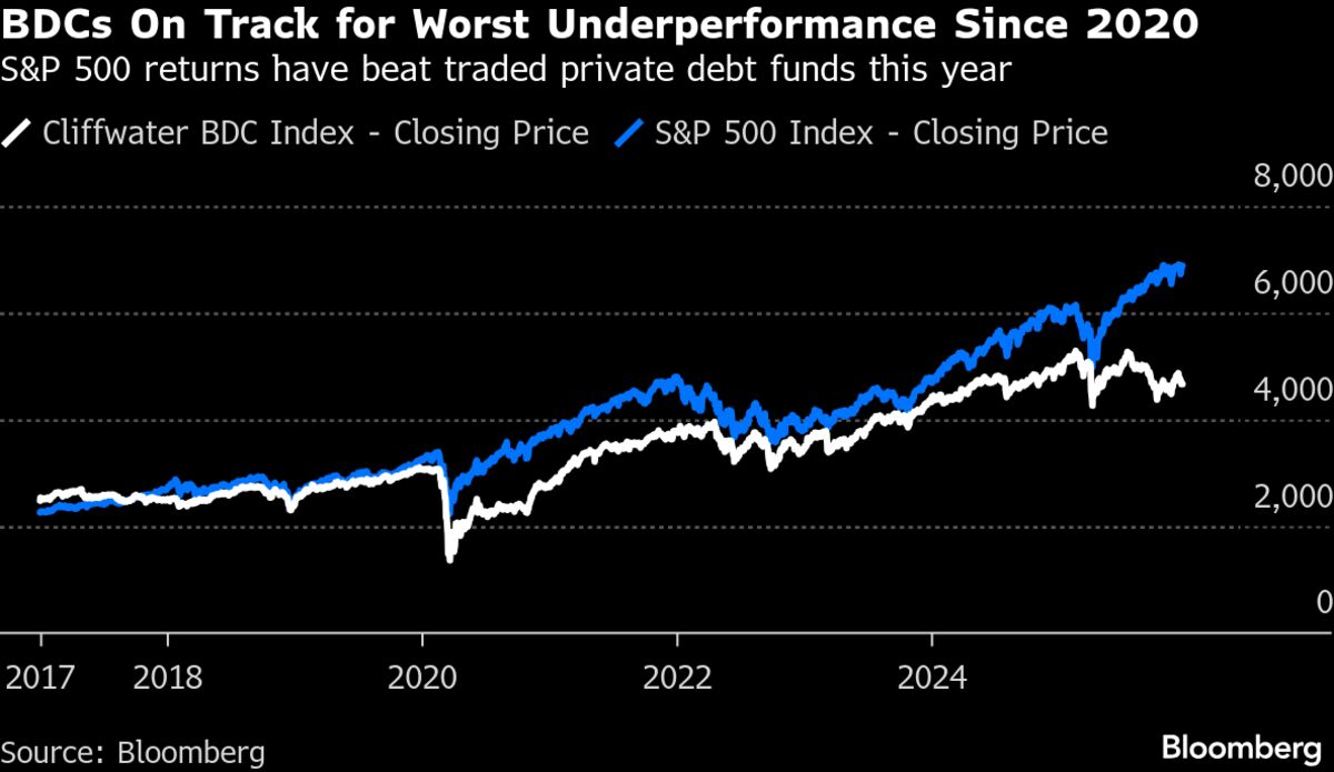 Business development companies are set for their worst year relative to the S&P 500 since 2020, leading some investors to question their future in the $1.7 trillion private credit market....