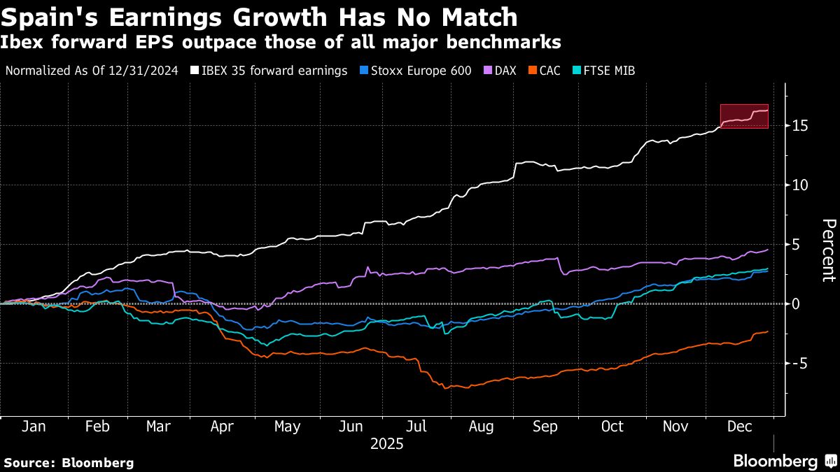Spanish stocks are poised for their best showing since the early 1990s and strategists predict more gains to come thanks to a brightening earnings outlook....