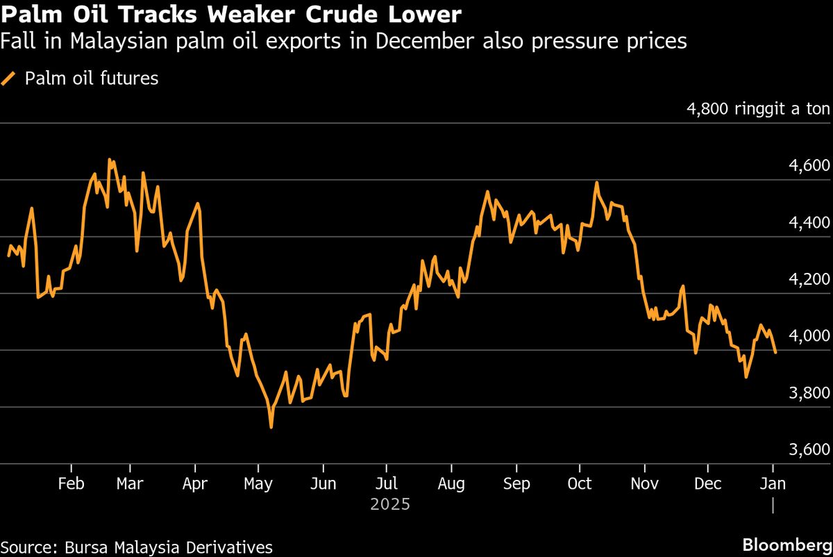 Palm Oil Dips on Weaker Crude and Fall in Malaysian Palm Exports
