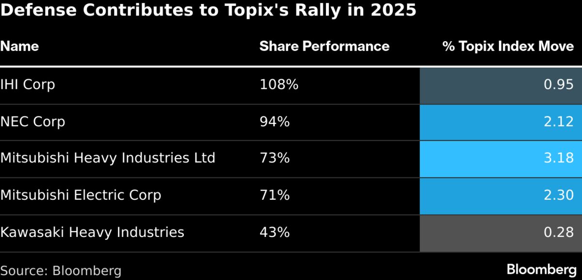 Japanese defense shares are expected to carry their rally into 2026, as heightened geopolitical tensions underscore the case for higher spending on armaments....