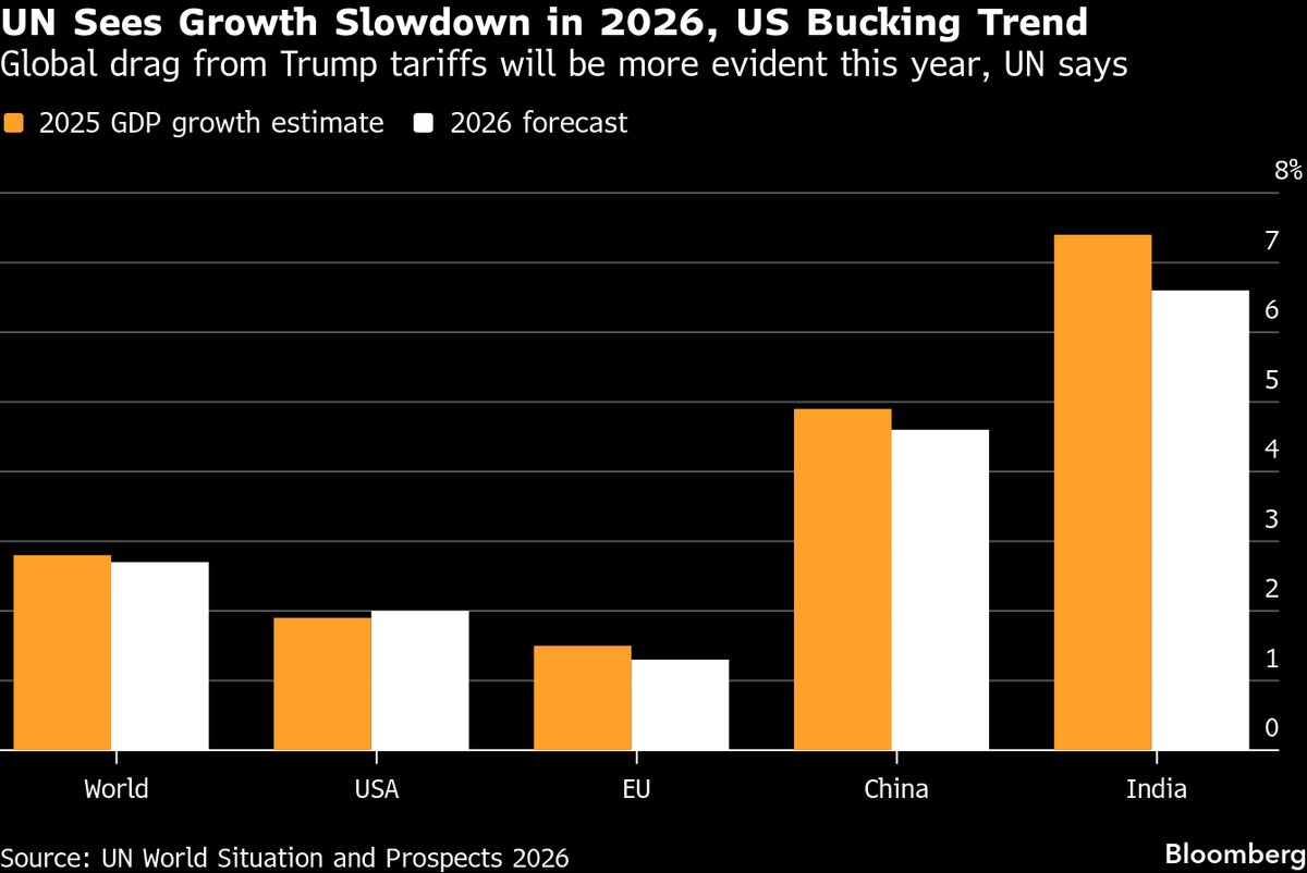 Global Growth to Slow in 2026 as Trump’s Tariffs Bite, UN Says