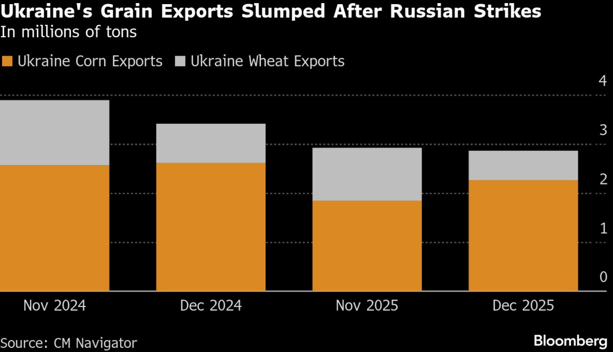 Ukraine Grain Exports Slumped in December as Strikes Intensified