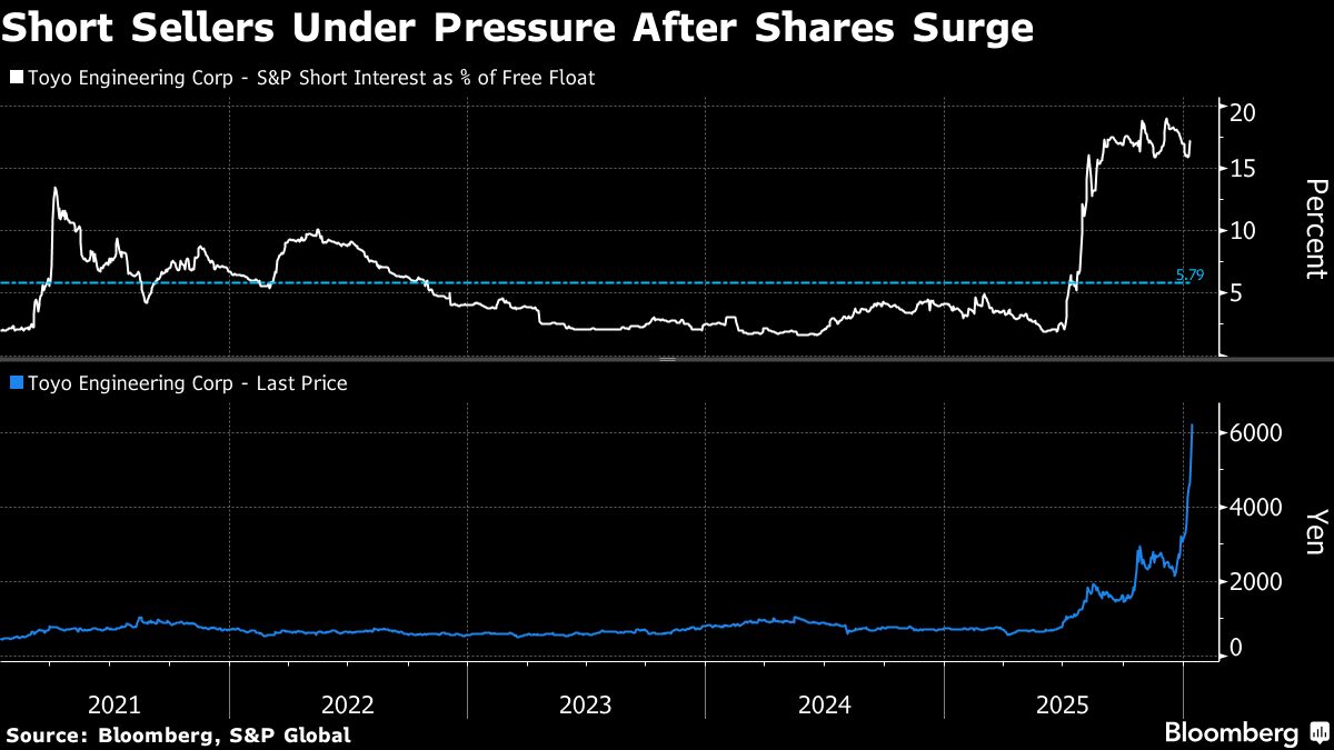 Pressure is mounting on short sellers of Toyo Engineering Corp. as the stock extends last year’s surge amid speculation that rising tensions with China will push Japan to seek alternative sources of rare earths....