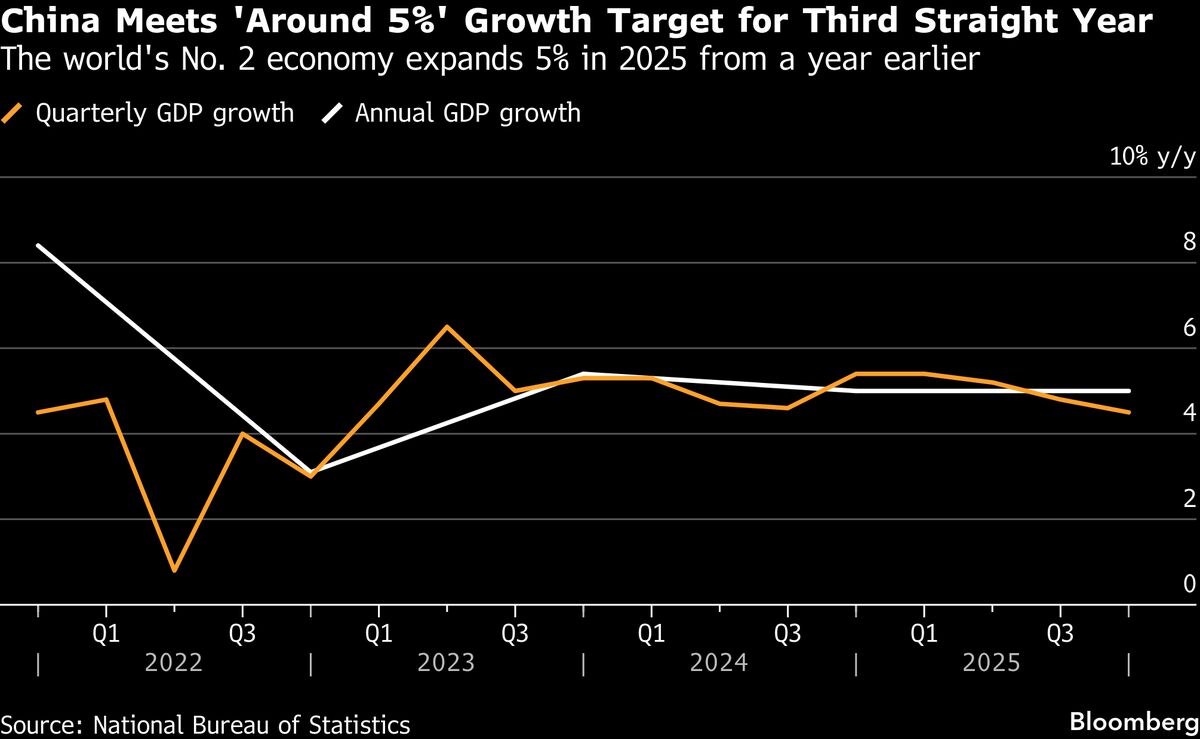 China’s Economy Grows 5% in 2025 as Exports Help Meet Target