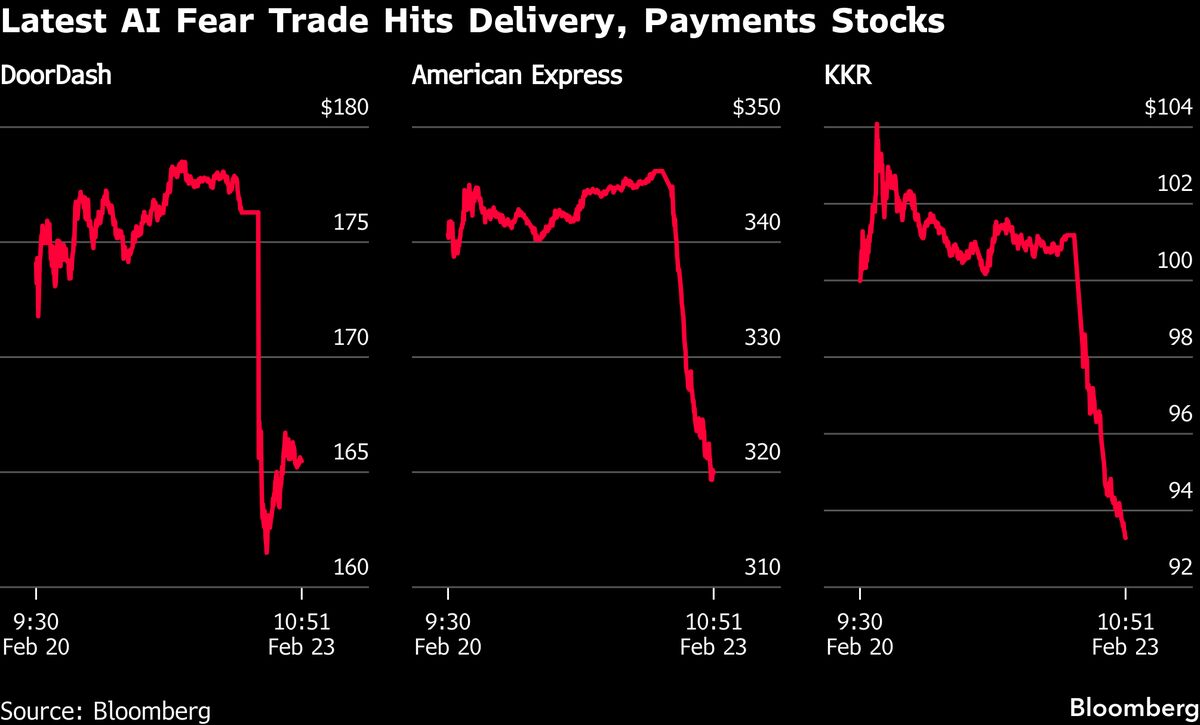 Delivery, payments, and software stocks slid sharply Monday after Citrini Research published a report laying out the potential risks that artificial intelligence could pose to various segments of the global economy....