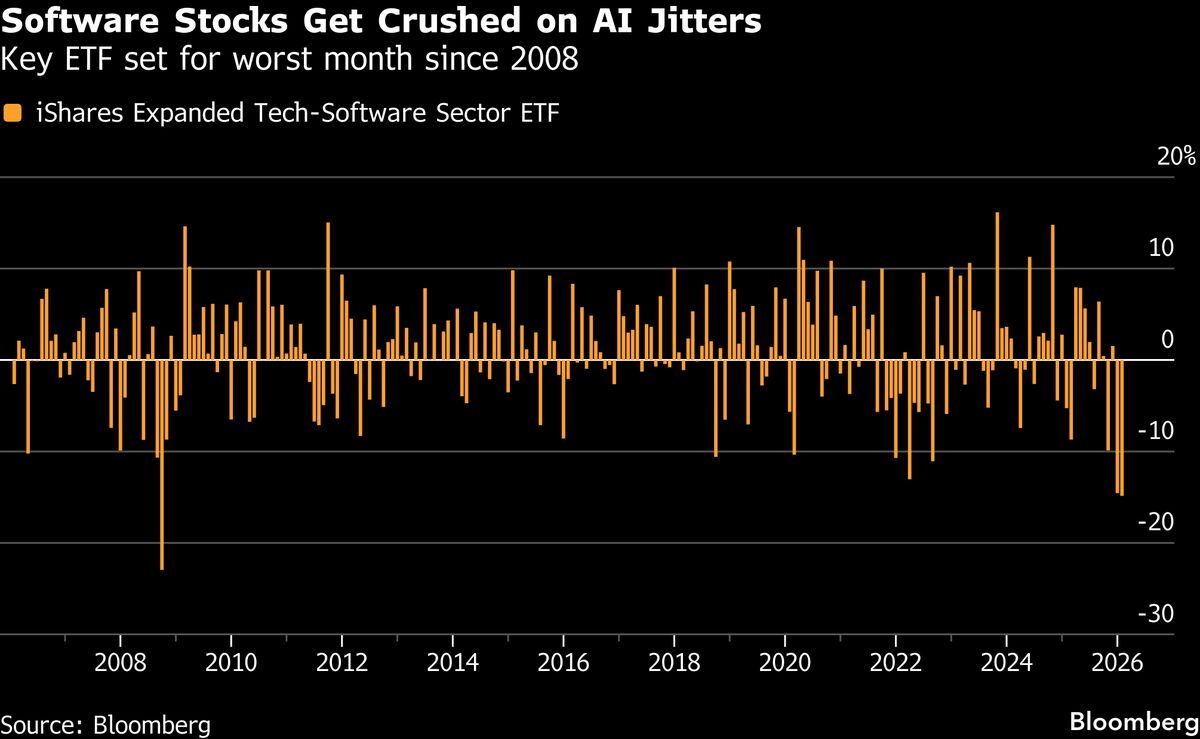 Most Asian shares were set for early declines Tuesday after fresh anxiety over the impact of artificial intelligence on company profits lashed Wall Street. Treasuries and gold rallied, while Bitcoin slumped....