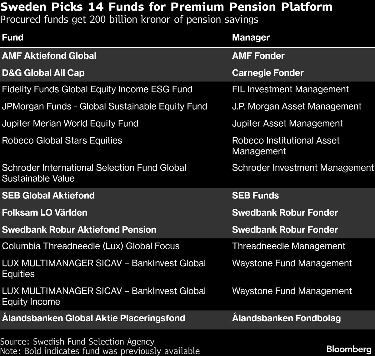 Sweden Picks Equity Funds for $22 Billion Pension Savings