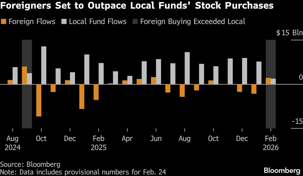 Foreign inflows into Indian equities in February are set to surpass domestic institutional demand for the first time in 17 months, aided by signs of improving earnings momentum and easing valuations....