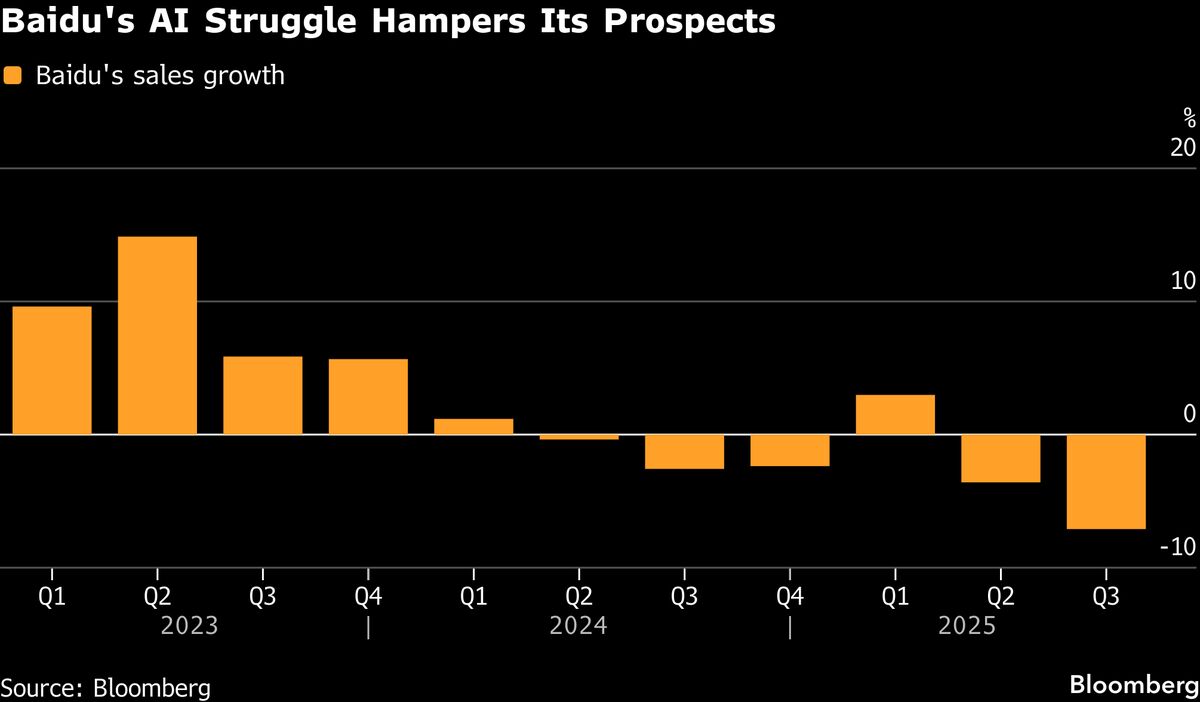 Baidu Sales Shrink for Third Consecutive Quarter on Its AI Lag