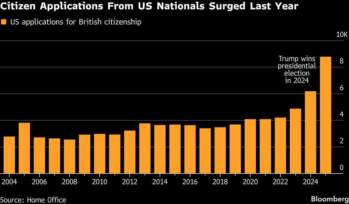 The number of US nationals applying for British citizenship hit an all-time high in the first year of President Donald Trump’s second term in the White House....