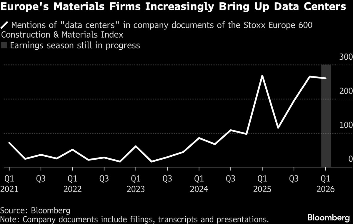 Construction and building materials companies in Europe dealing with a struggling housing market and weak industrial activity are pivoting to the one area that is booming right now: data centers....