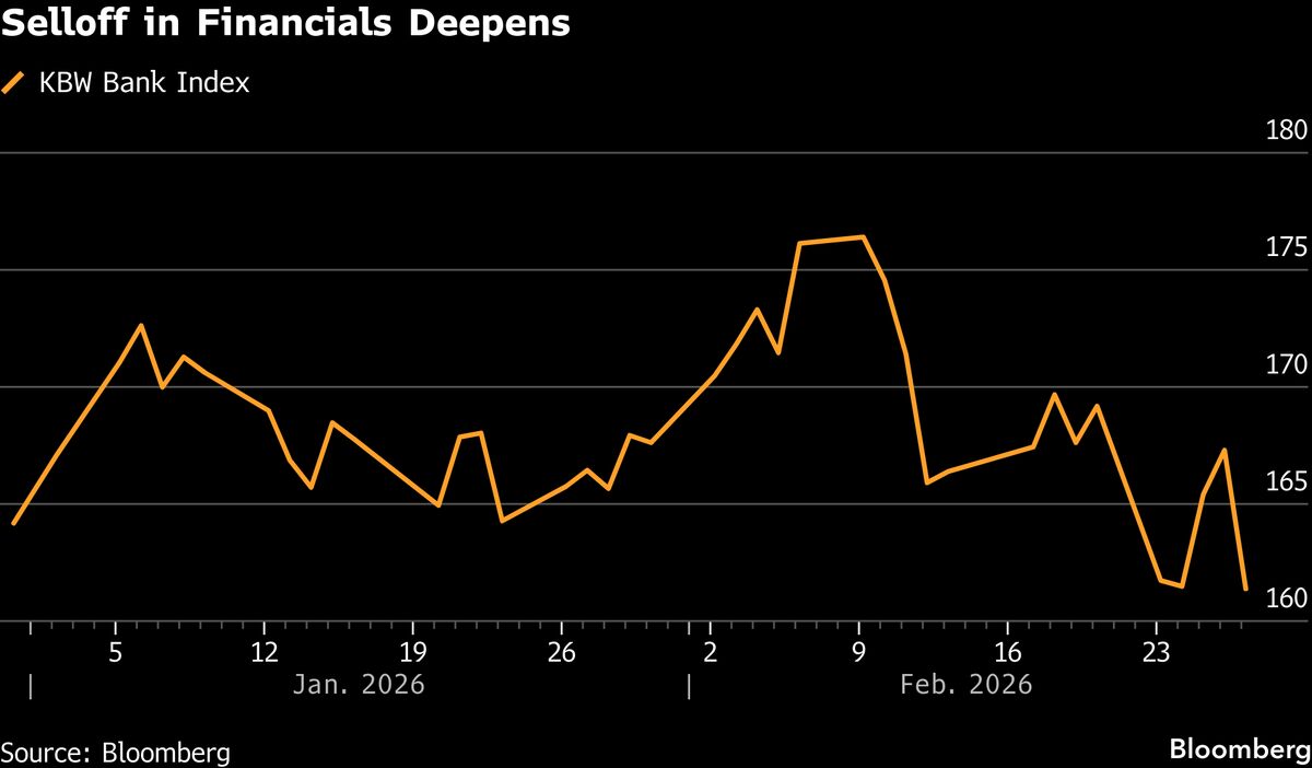 Financial Shares Walloped by AI, Credit Woes Hit Three-Month Low