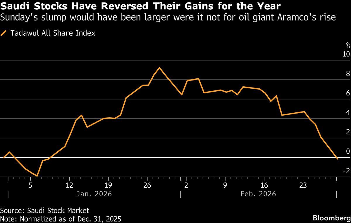Saudi Arabian and Egyptian stocks fell on Sunday, in one of the first signs of the US-Iran war hitting the region’s financial markets....