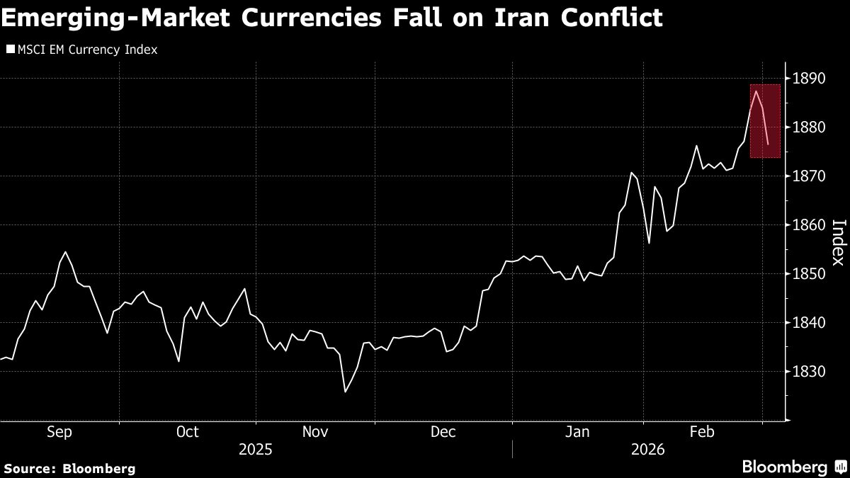 Emerging Market Currencies, Stocks Fall on Iran Conflict Worries