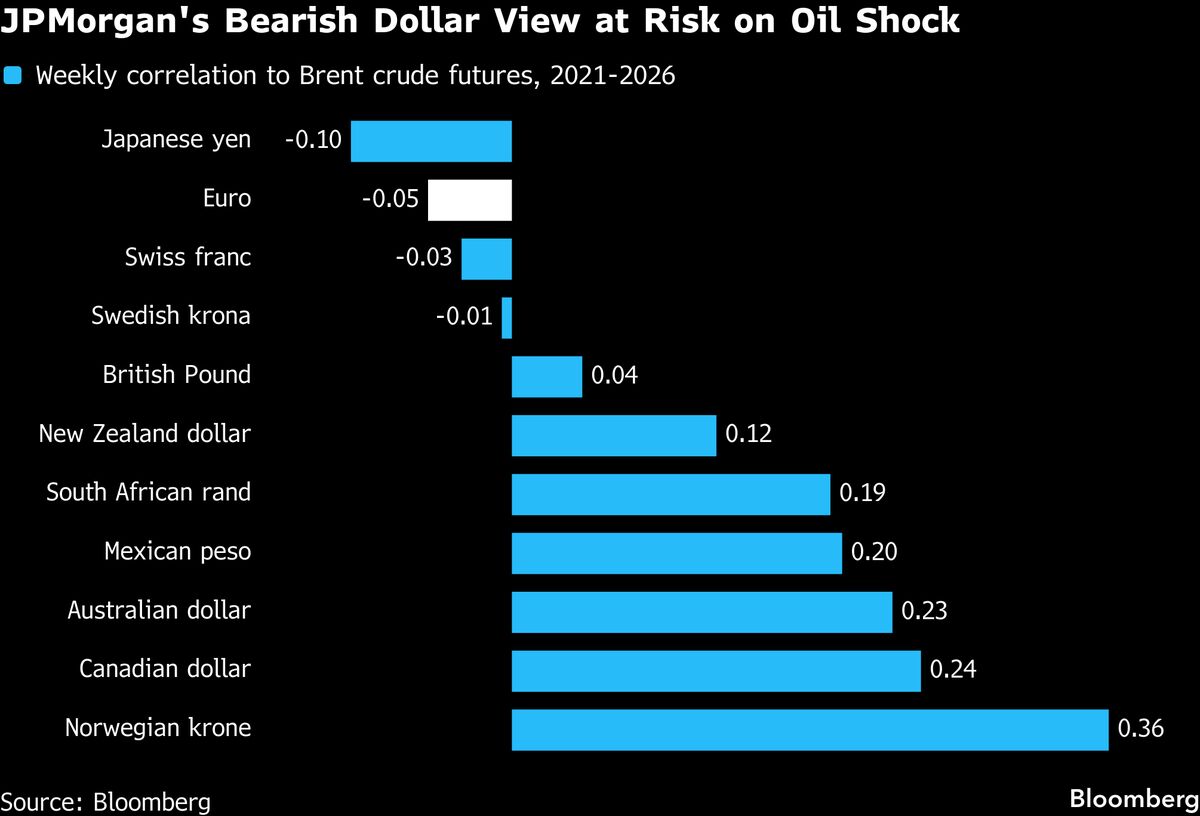 A sustained oil price shock as conflict between the US and Iran escalates and snarls tanker traffic across the Middle East is the biggest threat to JPMorgan Chase & Co’s view that the dollar will weaken this year, according to the bank’s foreign-exchange strategists....