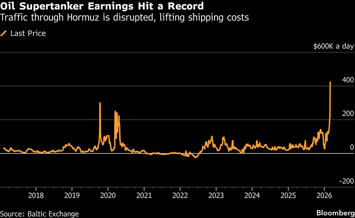 Oil Supertanker Rates Soar to Record on Middle East Conflict