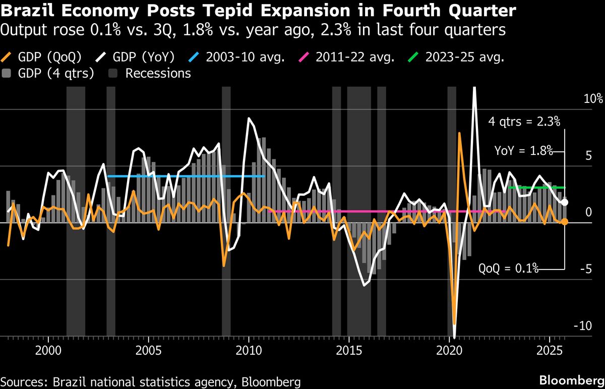 Brazil’s economy sputtered at the end of 2025, dragged down by hefty borrowing costs as well as tariffs that undercut growth and made way for monetary easing....