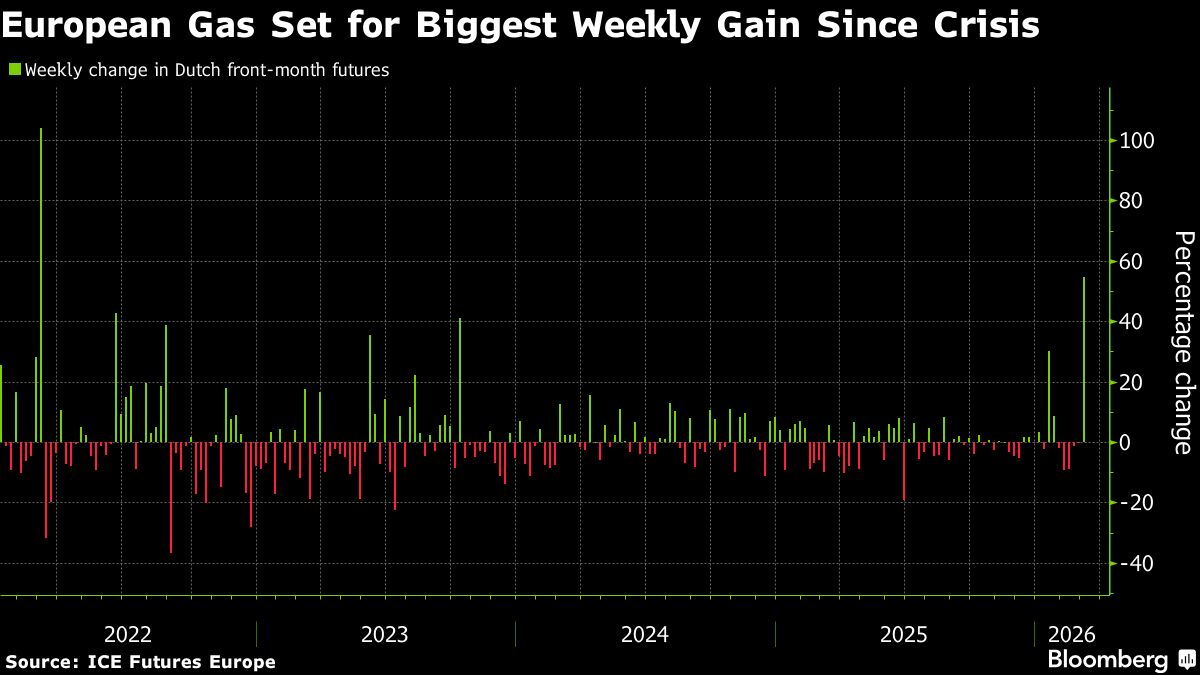 European natural gas prices are poised for their biggest weekly gain since the energy crisis as the war in the Middle East continues to cloud the outlook for global flows....
