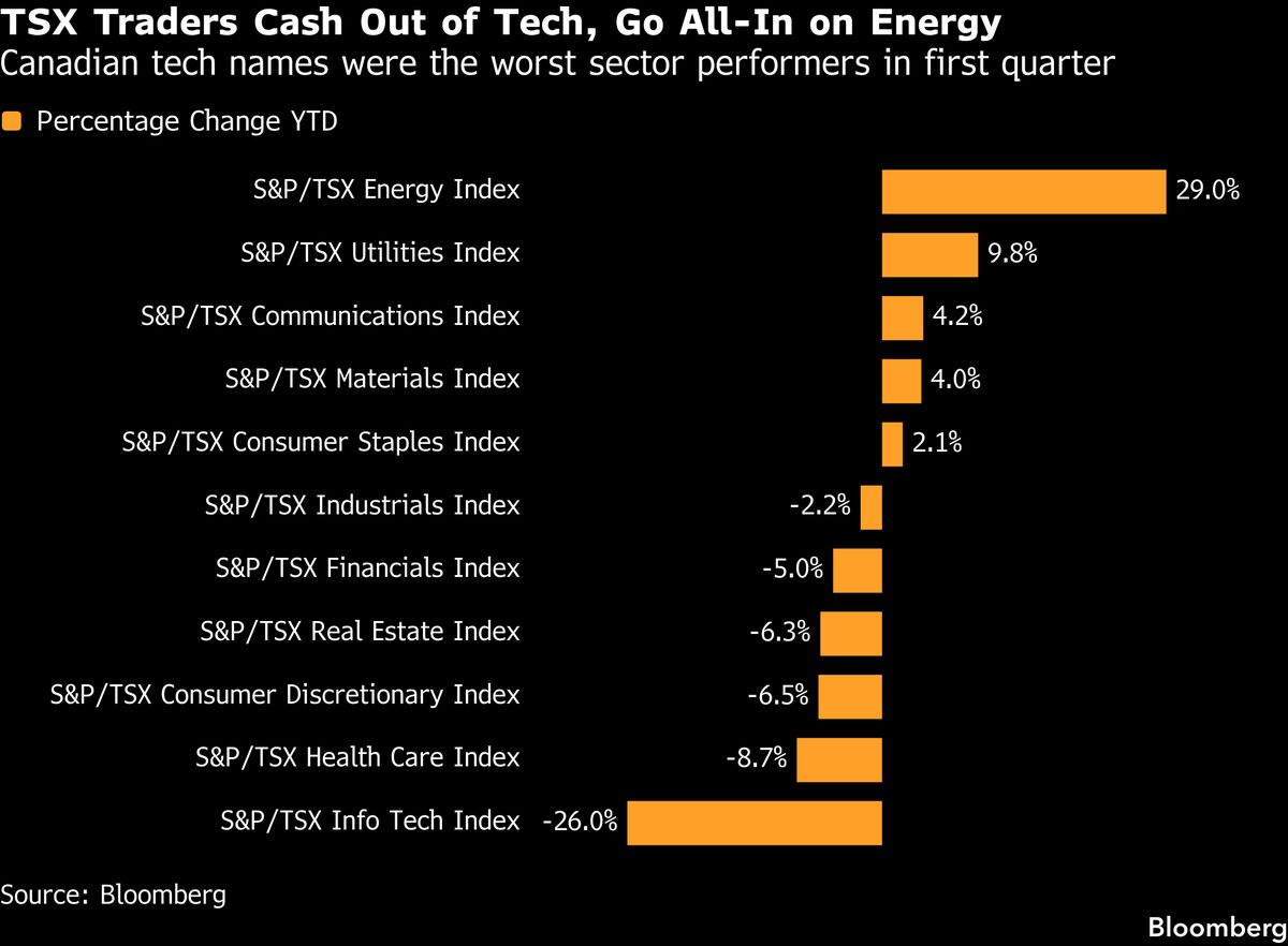 Canadian Tech Stocks Set For Worst Quarter Since 2022 on AI, War