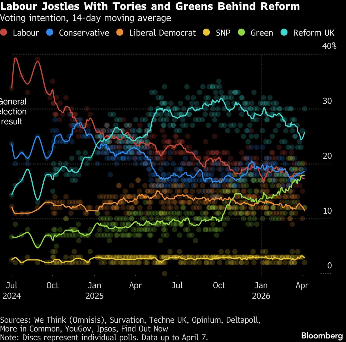 Labour has slipped to fourth place in UK national polling ahead of a set of local and regional elections next month that are shaping up to be particularly bruising for Prime Minister Keir Starmer’s governing party....