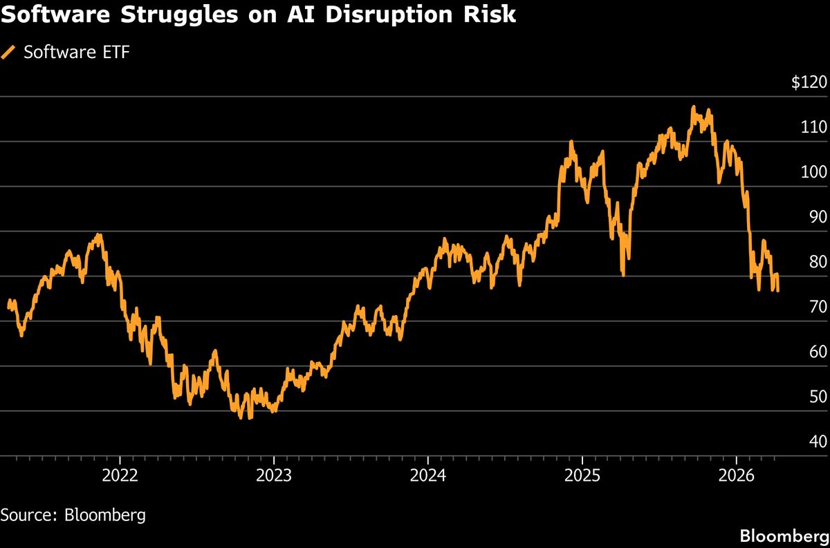 Shares of software companies fell on Thursday, in the latest example of the group slumping amid concerns about disruption from artificial intelligence services....